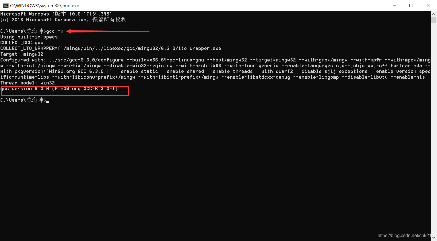 输入gcc -v,出现如下信息表示配置成功。
