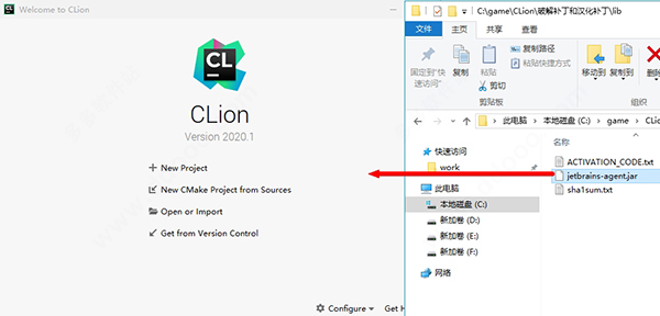 12、软件重启后直接关闭,将汉化补丁“resources_zh_CN_CLion_2020_r1.jar”移动到软件安装目录下的lib目录中;