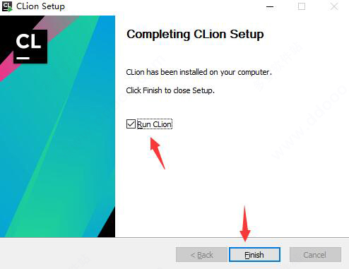 6、安装完成,勾选Run CLion,点击Finish运行软件;