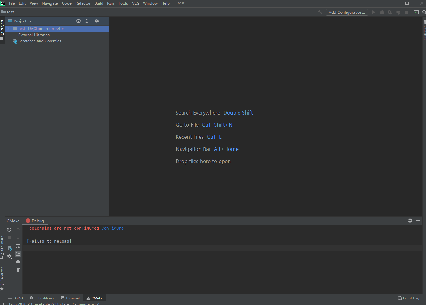 14. 如图所示进入了 Clion2020的主页面