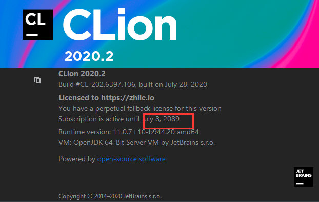 20. 如下图方框,Clion2020.2激活到2089年,表示破解成功,永久激活