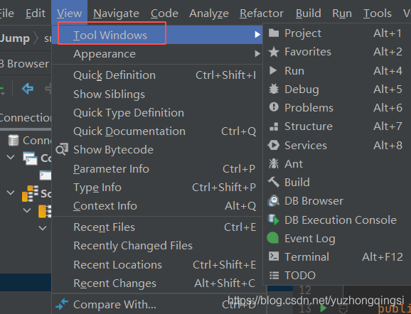 此时发现Tool Windows中没有Database选项,需要安装Database工具包。