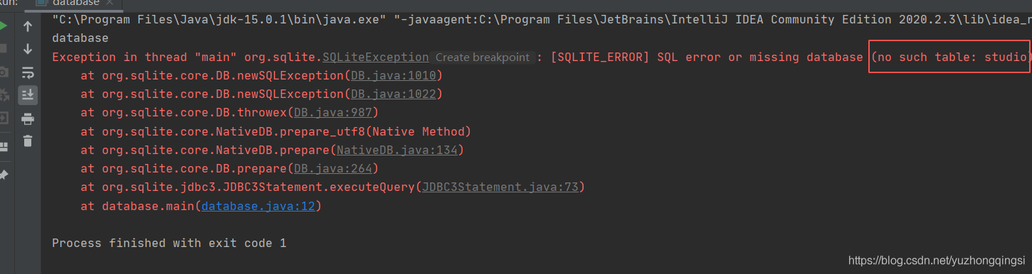 出现如下错误,可能是没有添加jar包导致。sqlite-jdbc-3.32.3.2.jar