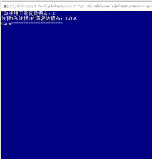 Console.WriteLine($"[ThreadLocal模式]线程1和线程2的重复数据有:{20000 - list.Distinct().Count()}");