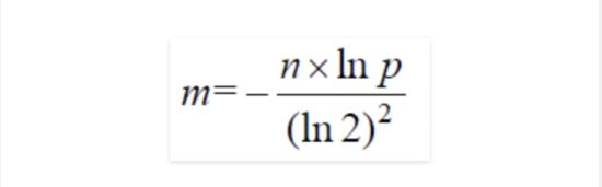 如何选取最合适的m(bit数组的大小)及k(哈希函数的数量),在已知n(需要映射的值得数量)及失误率p的情况下: