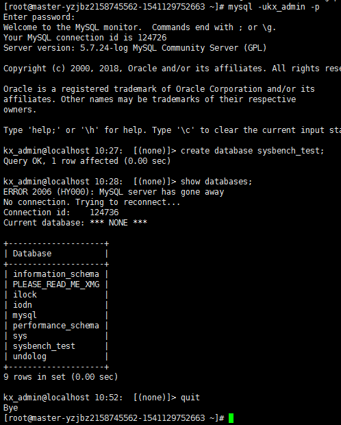 sysbench /usr/share/sysbench/oltp_read_write.lua --tables=5 --table_size=100 --mysql-user=root --mysql-password=xxx --mysql-host=192.168.0.103 --mysql-port=3306 --mysql-db=sysbench_test cleanup