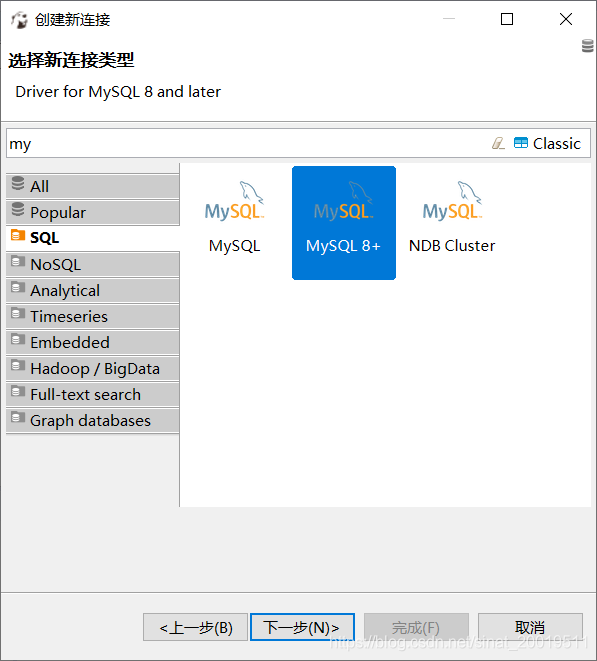 选择数据库 --》下一步 --》完成