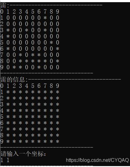 2.输入一个坐标可观测其周围九格内的地雷数