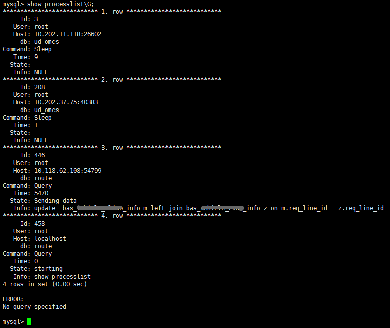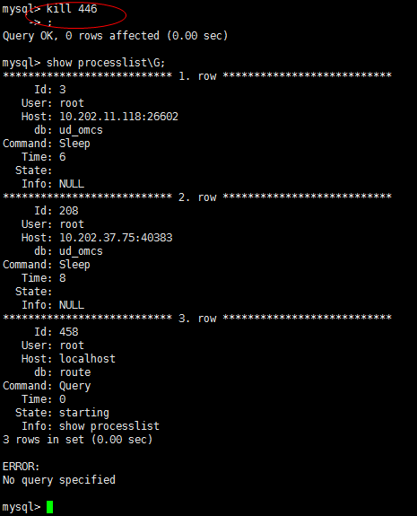 mysql> show processlist\G;