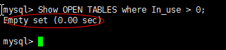 mysql> show OPEN TABLES where In_use > 0;