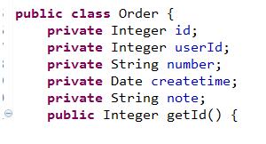 SELECT id,user_id,number,createtime,note FROM orders,这里的数据库表user_id与pojo的Order对象中的userId不一致