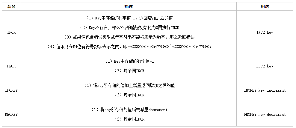 上面是 string 类型的基本命令,下面介绍几个自增自减操作,这在实际工作中还是特别有用的(分布式环境中统计系统的在线人数,利用Redis的高性能读写,在Redis中完成秒杀,而不是直接操作数据库。)。
