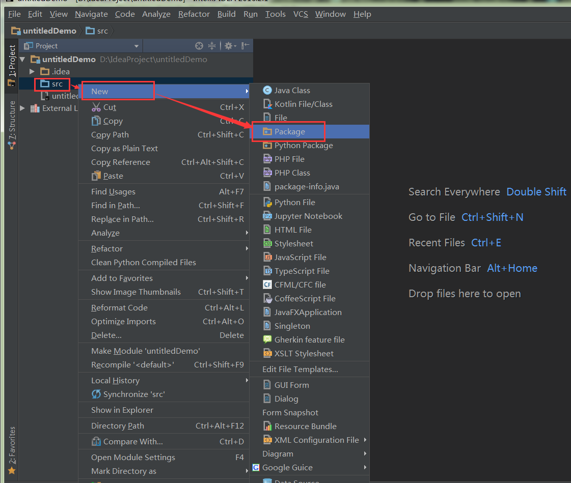 右击src选择new->Package