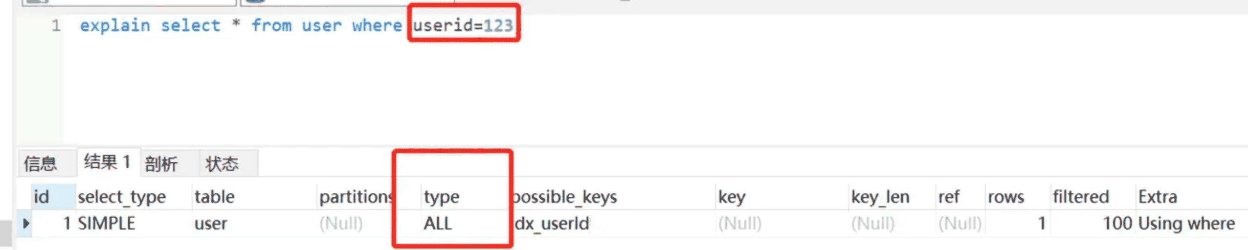日常开发写 SQL 的时候,尽量养成这个好习惯呀:写完 SQL 后,用 explain 分析一下,尤其注意走不走索引。