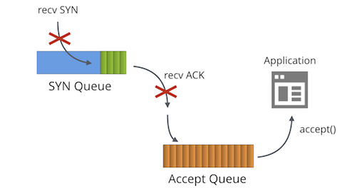 这两个术语有时也被称为“reqsk_queue”,“ACK backlog”,“listen backlog”,甚至“TCP backlog”,但是这篇文章中我们使用上面两个术语以免造成混淆。