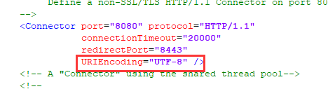 <Connector URIEncoding="utf-8" port="8080" protocol="HTTP/1.1"