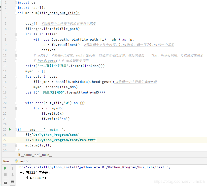 为方便演示,我用txt文件代替文件夹,用txt文件中的字符串代替文件夹中文件来生成MD5值并进行去重操作。