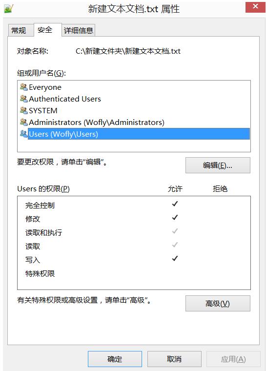 Windows用户类型:Administrator、Guest、自定义用户等;文件的权限不外乎:Read、Write、Modify、Remove等等,其中拥有所有权限的字符叫做FullControl。