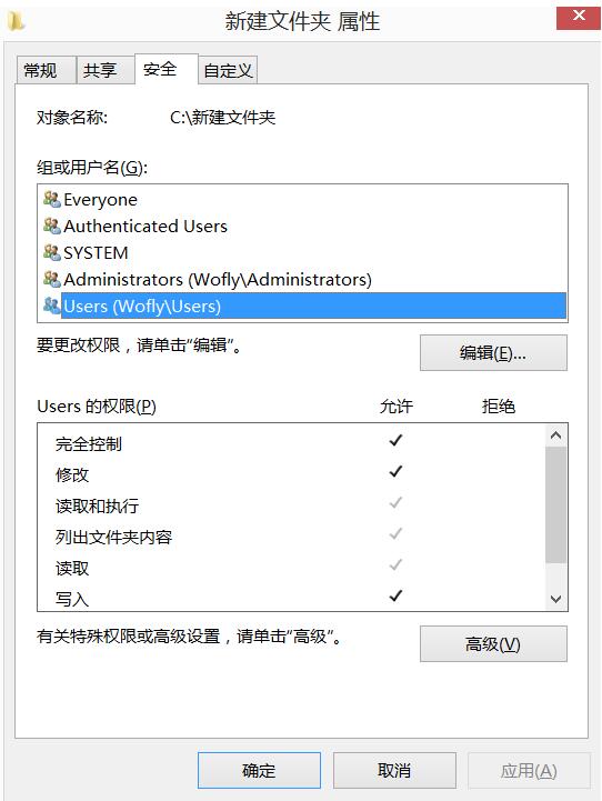 //添加Users用户组的访问权限规则 完全控制权限