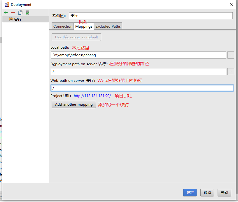 如下图提示,配置好映射,点【确定】