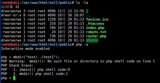但是如果我们放入一个中间值,在第一次执行能够成功创建目录,并且error_reporting还能成功执行,这时候就需要用到PHP弱类型比较,PHP中 0 == null,0 == 非数字开头的字符串。