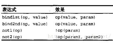 函数配接器包含在头文件<functional>中。预定义的函数配接器如下表所示: