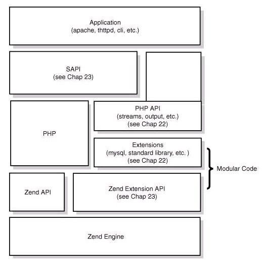 3、 接口部分(SAPI),负责同 WEB 服务器的会话等功能。 Zend包括了第一部分的全部和第二部分的局部,PHP内核 包括了第二部分的局部和第三部分的全部。他们合起来称之为 PHP 包。Zend 构成了语言的核心,同时也包含了一些最基本的 PHP 预定义函数的实现。PHP 包(内核)则包含了所有创造出语言本身各种显著特性的模块。
