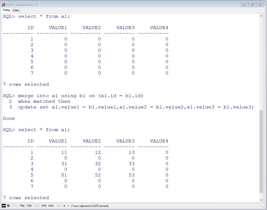 但是涉及到了多列修改,用这个就不太现实了,在oracle中就提供了一种语法让我们去进行多表修改和新增。