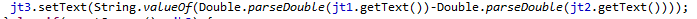 jt3.setText(String.valueOf(Double.parseDouble(jt1.getText())-Double.parseDouble(jt2.getText())));