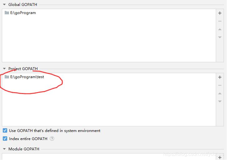 也就是说,开启模块支持后我们需要确认Project GOPATH 是空的,即将其中的项删除。