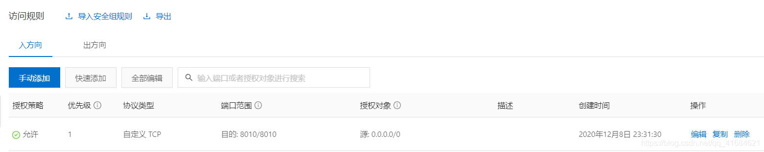 注意:云服务器上安全组要打开 8010 端口号 且 防火墙也要放行 8010