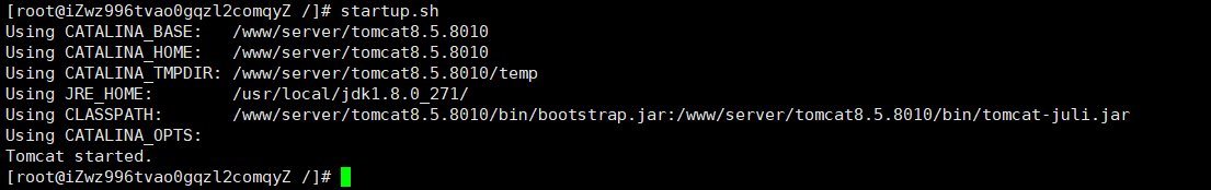 export JAVA_HOME=/usr/local/jdk1.8.0_271/ export CLASSPATH=%JAVA_HOME%/lib:%JAVA_HOME%/jre/lib export TOMCAT_HOME=/www/server/tomcat8.5.8010/ export PATH=$TOMCAT_HOME/bin:$JAVA_HOME/bin:$JAVA_HOME/jre/bin:$PATH