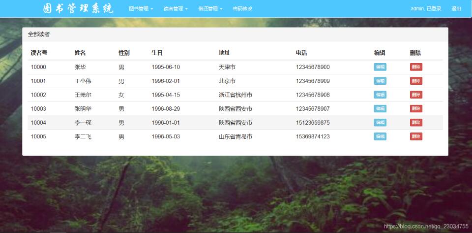 基于Spring + Spring MVC + MyBatis的图书馆管理系统,使用Maven进行包管理。主要功能包括:图书查询、图书管理、图书编辑、读者管理、图书的借阅与归还以及借还日志记录等。