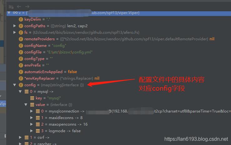 执行v.ReadInConfig()后配置文件的内容将重新读取到viper实例中,如下图: