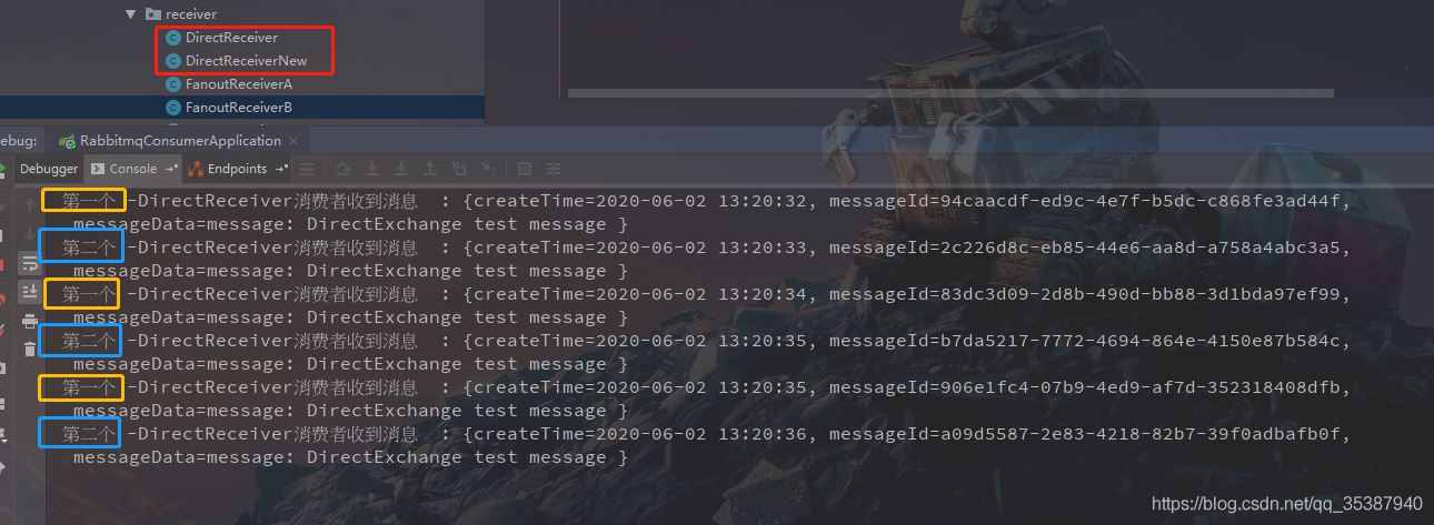 然后我们的手动确认消息监听类,MyAckReceiver.java 就可以同时将上面设置到的队列的消息都消费下来。
