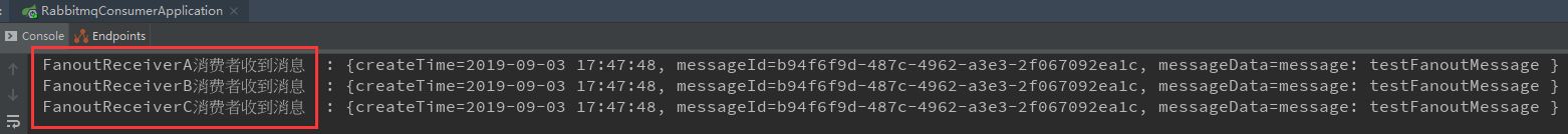 System.out.println("消息成功消费到 messageId:"+messageId+" messageData:"+messageData+" createTime:"+createTime);
