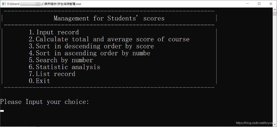 printf("| Management for Students' scores |\n");
