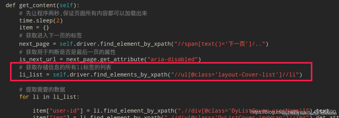 item["user-id"] = li.find_element_by_xpath(".//div[@class='DyListCover-userName']").text