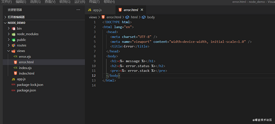 express node_demo -e (选择ejs模板) // 在项目名称的后面添加 -e 那么创建出来的模板文件就是.ejs类型,语法是与html相同的