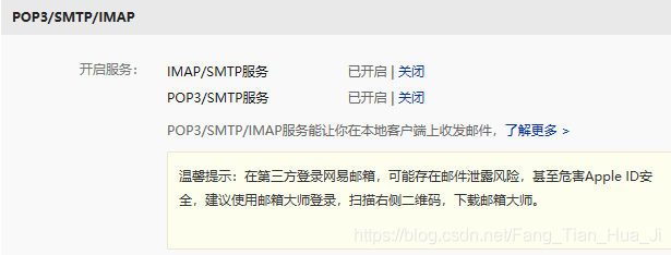 在163邮箱中的设置中也将POP3/SMTP服务打开。