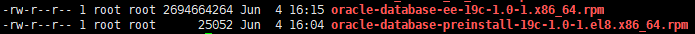 上传到服务器的两个rpm文件,第一个是数据库安装包,第二个是安装数据库的准备环境,安装的时候先安装第二个。
