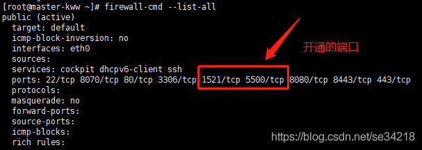 4、如果centos8开了防火墙,还需要关闭防火墙或添加监听端口,添加端口如下: firewall-cmd --zone=public --permanent --add-port=1521/tcp firewall-cmd --zone=public --permanent --add-port=5500/tcp