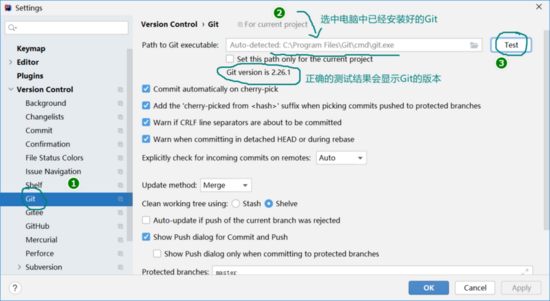 找到Git配置选项,进行Git测试,如图所示: