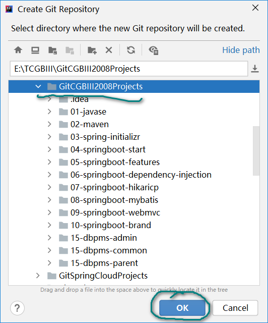 创建项目本地库,如图所示: