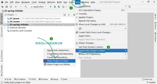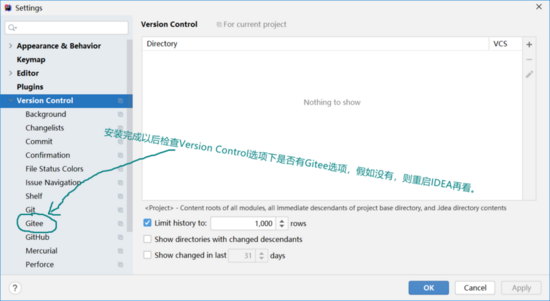 Gitee 安装成功以后,检查是否在Version Control中有Gitee选项,如图所示: