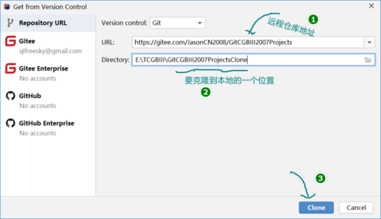 从Gitee地址克隆(Clone)项目