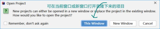 克隆完成以后,选择打开项目的窗口,例如: