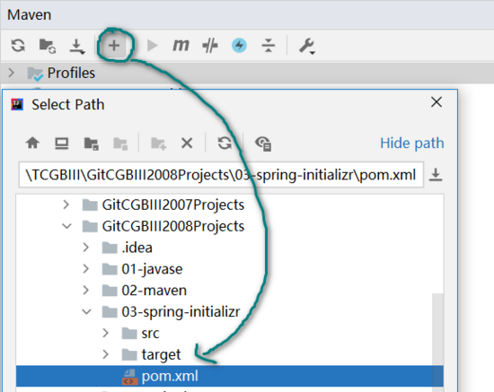 也可以在项目的pom.xml文件上右键选择add as maven project,将项目添加到maven区。
