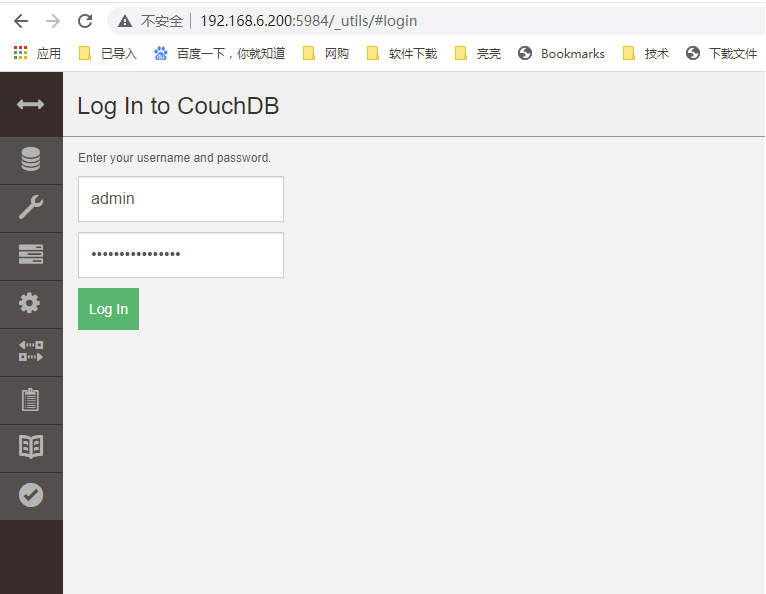 【2】CouchDB登录页面,您可以使用管理员用户(我们已经在local.ini文件中添加了该用户)登录Fauxton。