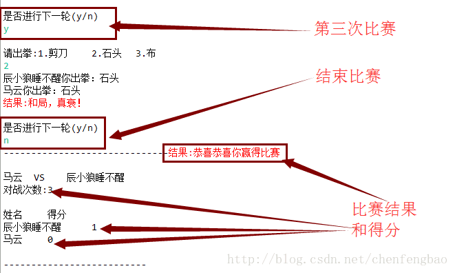 //输出出拳结果并返回